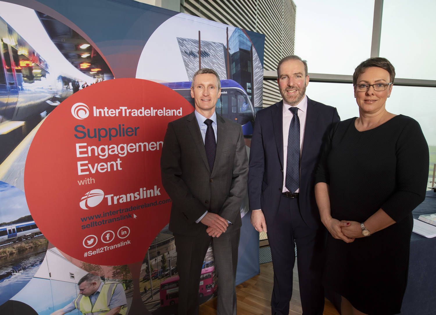 Pictured opening the event are l-r Translink’s Chief Financial Officer Paddy Anderson, InterTradeIreland Chairperson Ken Nelson MBE and Translink’s Head of Procurement Tricia Massey.